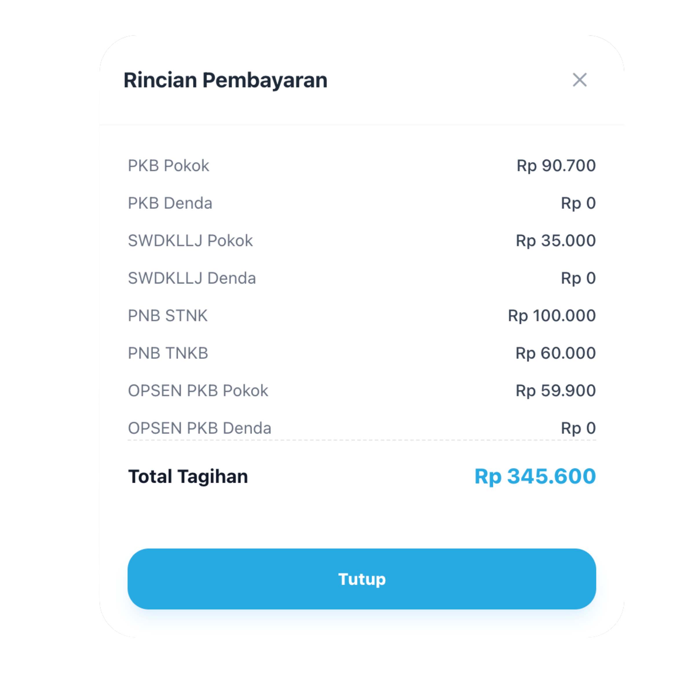 Kami memisahkan antara biaya Pajak Negara (PKB/SWDKLLJ) yang tertera di STNK dengan biaya jasa layanan kami. Tidak ada angka yang ditutup-tutupi